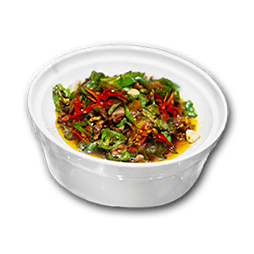 "Cubes of meat stir-fried over hot fire. A hungry diner can easily go through three bowls of rice with a serving of meat stir-fry. There's a good reason why this is the *most* popular dish in the frontier."